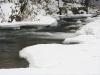 Zpátky k tomu jak to vypadá na trase. Nacházíme se na místě kam se bezejmený potok vlévá do říčky Loučka. Je zde tábořiště a rozcestník ten nám ukazuje 5.5km do Skryjí našeho cíle. Šipka ukazuje kamsi nahoru do skal a tak je nám jasné že to až tak snadných 5.5km nebude. Ve skutečnosti podle různých zápisků cestovatelů to je celkem obtížná cesta i v létě. Teď v zímě s pokrývkou sněhu a místy i ledu je to bohužel o dost horší. První dva výšlapy nebyly nijak zrádné - jištění lany popřípadě jen výšlap vzhůru. Po necelém kilometru přišla obtížnější část trasy. Kluzká cestička sněhem zasypané příkré skály podlézání prolézání a nadlézání spadlých stromů ve srázu nad hučící mrazivou řekou Loučkou. Pro méně zdatné v zimě doporučuji upravit trasu a vrátit se jinou cestou například k Drahonínu. Cesta má podobný charakter střídavě po celou část cesty až do Skryjí. Fotit záludnosti trasy se mi nechtělo letní snímky najdete například na Aleniných toulkách -